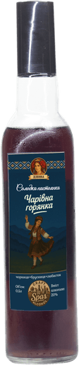Склад: вода питна “Верховинка”, зерновий дистилят двійної перегонки, мед карпатський з маточним молоком, забрус бджолиний, чорниця екстракт, брусниця екстракт, любисток екстракт, цукровий сироп, фруктозний сироп, глюкозний сироп.